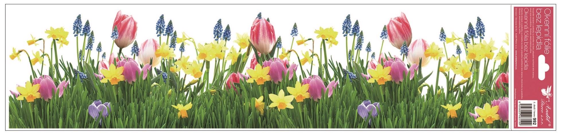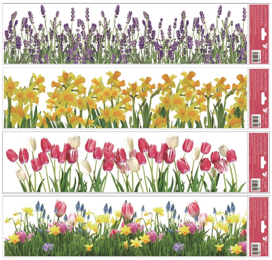Okenní fólie pruhy květiny 64x15 cm