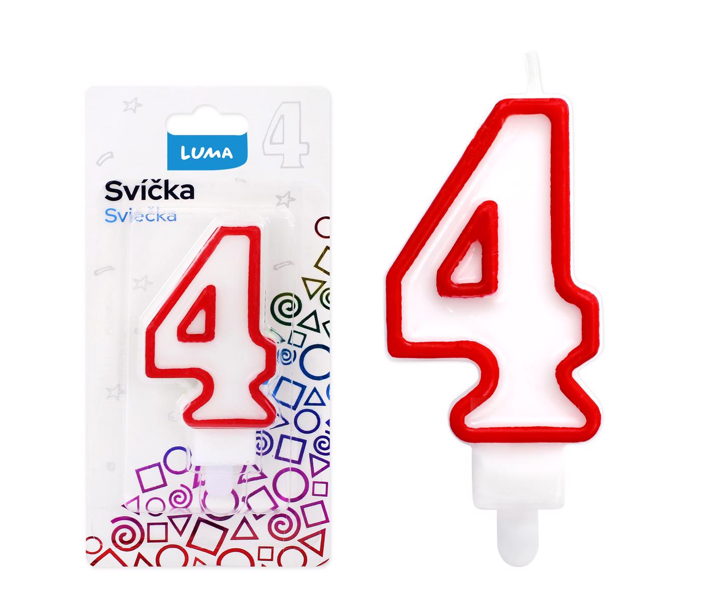 LUMA Narozeninové svíčky číslo "4" 85mm (6ks/bal, 600ks/krt)