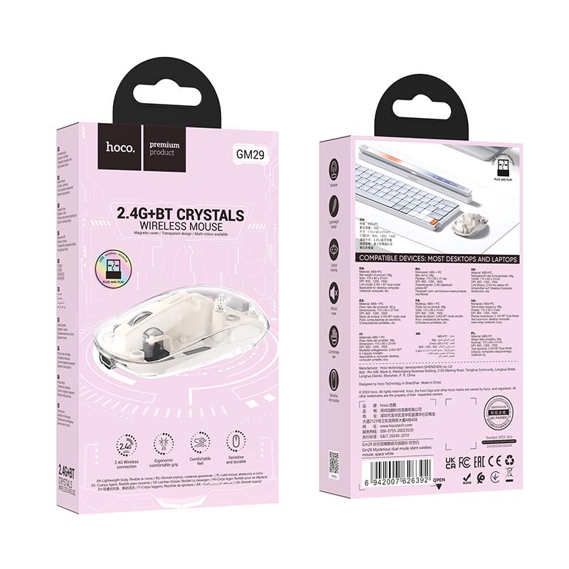 Mysterious Silent transparentní bezdrátová myš 2,4G 1600-DPI ROMANTICKÁ FIALOVÁ (240ks/krt)