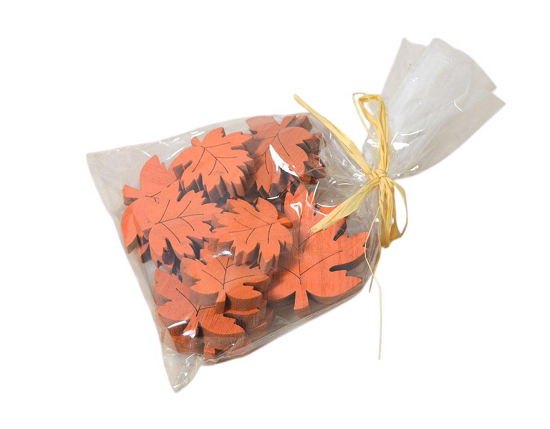 Lístky javoru dřevo v sáčku oranžové (12sada/bal)