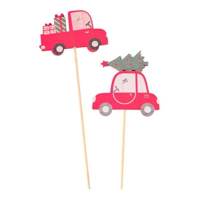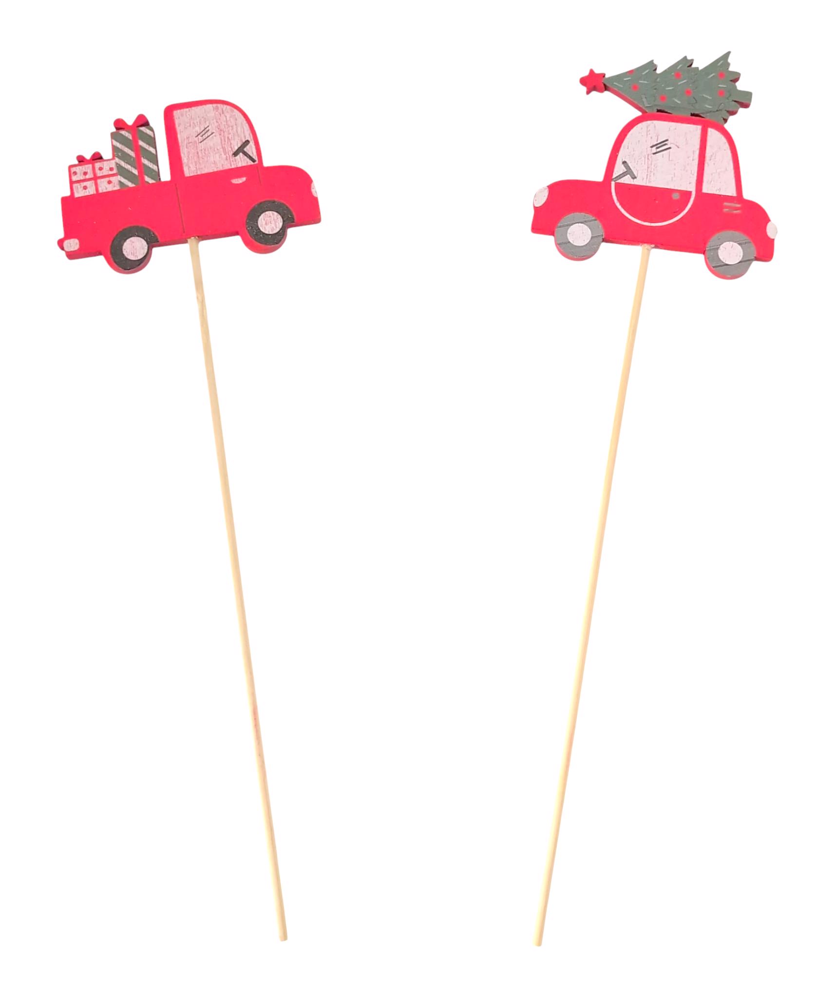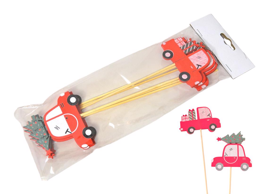 Zápich dřevo autíčko s dárky 9cm (12ks/bal)