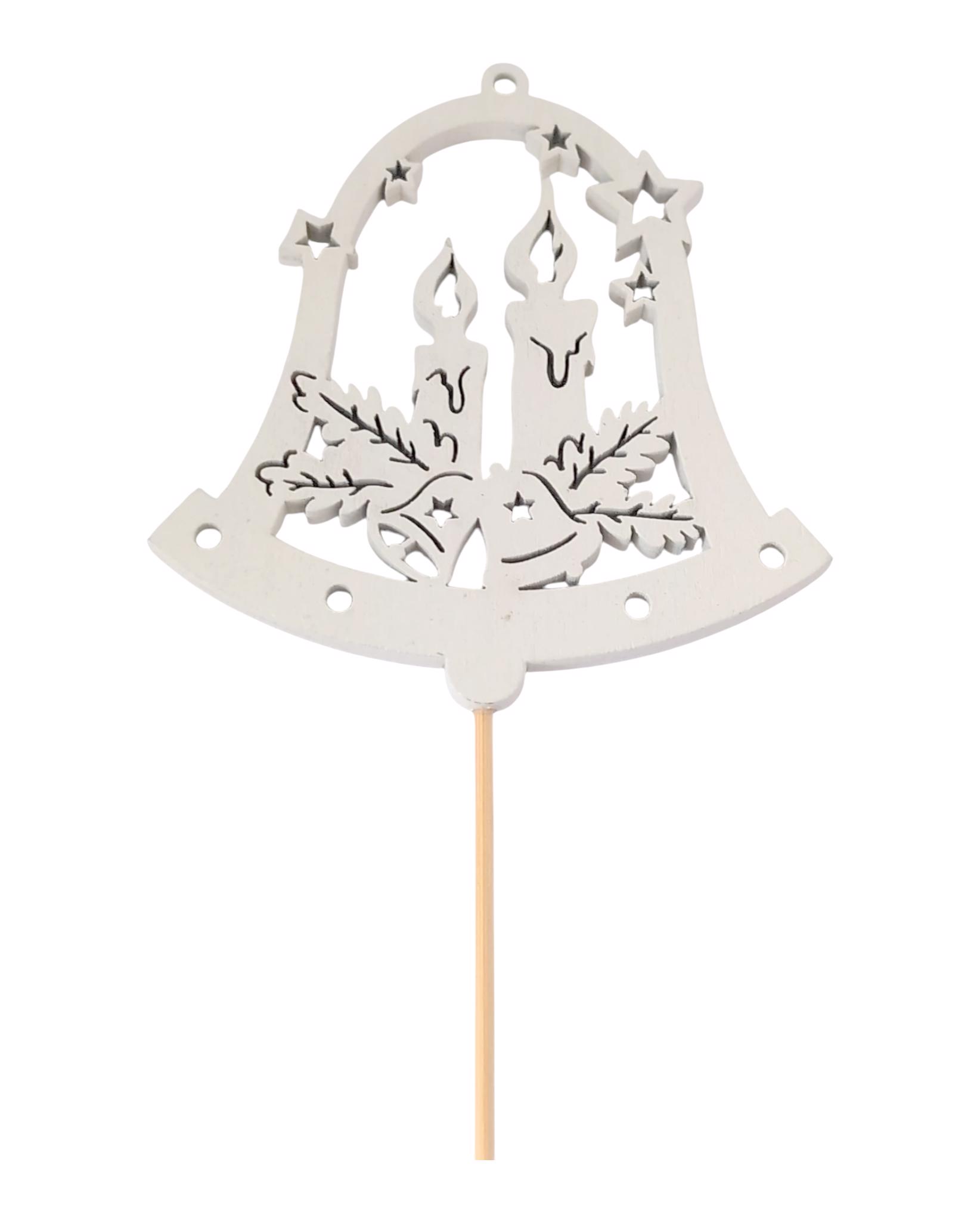 Zápich dřevo zvonek svíčky bílý 10cm (12ks/bal)