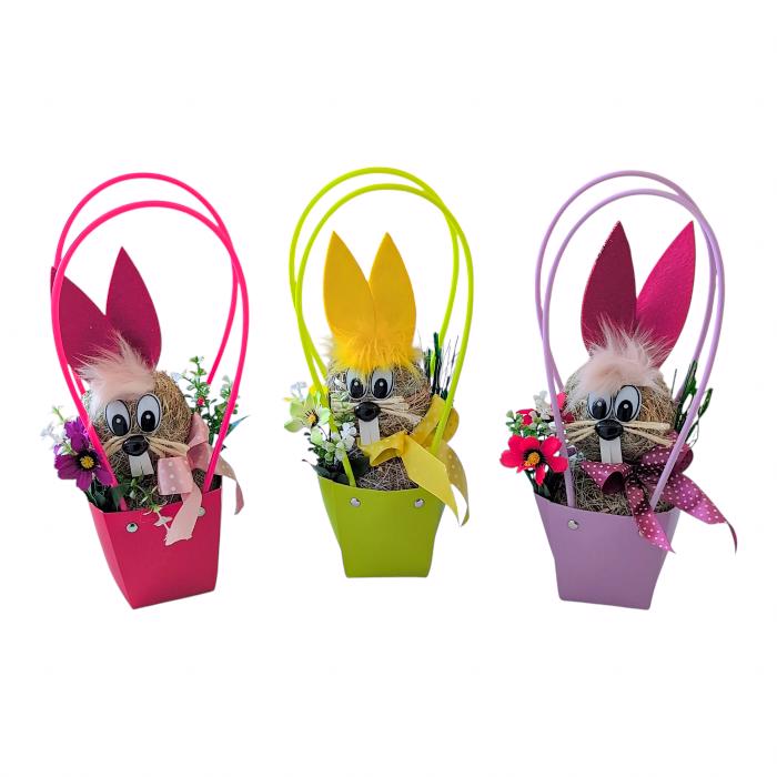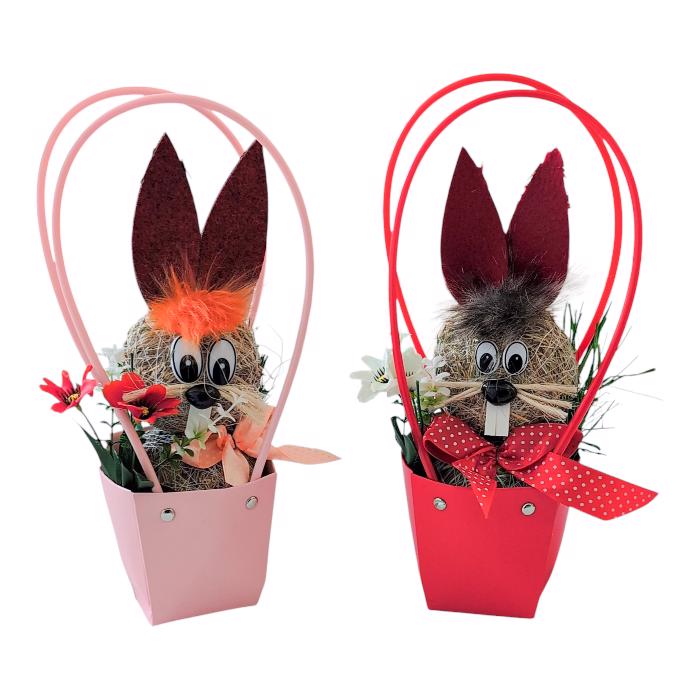 Slaměný králík v košíku, mix barev