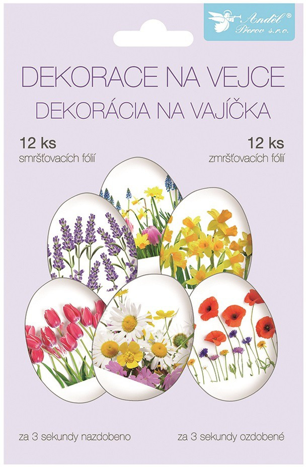 Smršťovací dekorace na vejce 12 ks, jarní květy (240/krt)