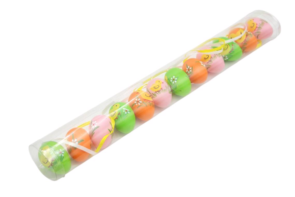 Vajíčka barevná lesklá plastová na zavěšení 6 cm, 6 ks v sáčku