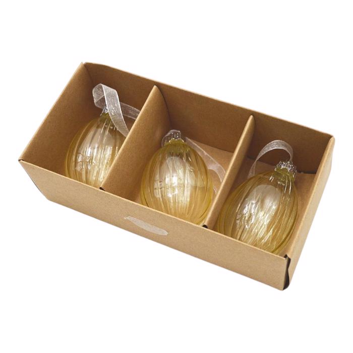 Vejce sklo ozdoba 3ks v boxu žlutá