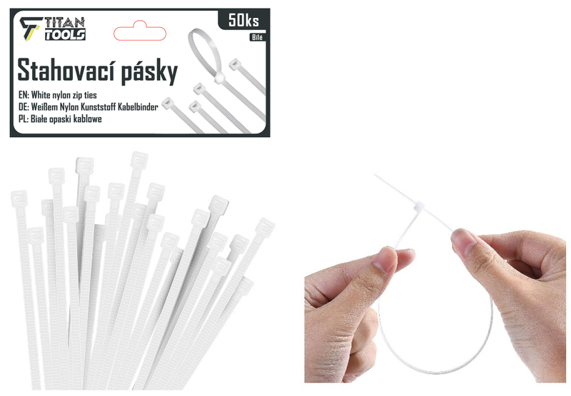Stahovací pásky bílé 7x300mm, 50ks (12set/bal,144/krt)